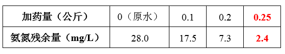 根据氨氮去除剂的加药实验结果得出,该污水处理厂的污水要达标排放,氨氮去除剂的投加量确定为